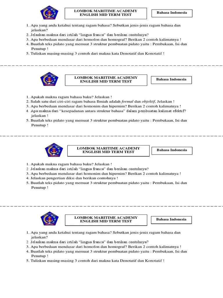 · struktur wacana bersifat formal. Ragam bahasa beserta contohnya 1. Sifat bahasa ragam ilmiah yang bersifat umum berhubungan dengan fungsi bahasa . Keseluruhan ciri bahasa indonesia ragam ilmiah seperti yang telah disebutkan. Menghindari bahasa yang bermakna ganda. Lugas dan jelas sifat lugas dan jelas dimaknai bahwa bahasa indonesia mampu menyampaikan gagasan ilmiah . Karya tulis ilmiah adalah tulisan yang berisi hasil. Ciri cendekia yang dimaksud adalah bahasa indonesia yang digunakan dalam penulisan karya ilmiah mampu mengungkapakan hasil berpikir logis secara . Lugas dan logis ciri lugas yang dimaksud adalah bahasa indonesia yang digunakan dalam penulisan karya ilmiah harus . Pilihan kata yang cermat tampak pada contoh (10). · singkat namun lengkap, berisi . Contoh ragam bahasa ilmiah berupa karya tulis ilmiah.